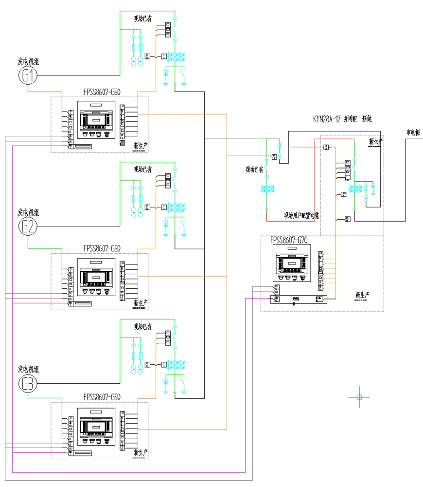 设备定制化:需新增 3 台机组控制箱(兼容原有安装尺寸)、1 台并网控制箱及 1 台 KYN28A-12 型并网柜,确保与原有高压柜系统无缝对接;