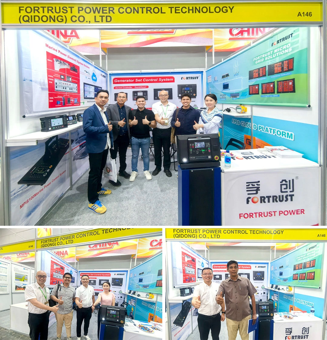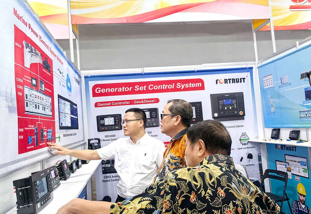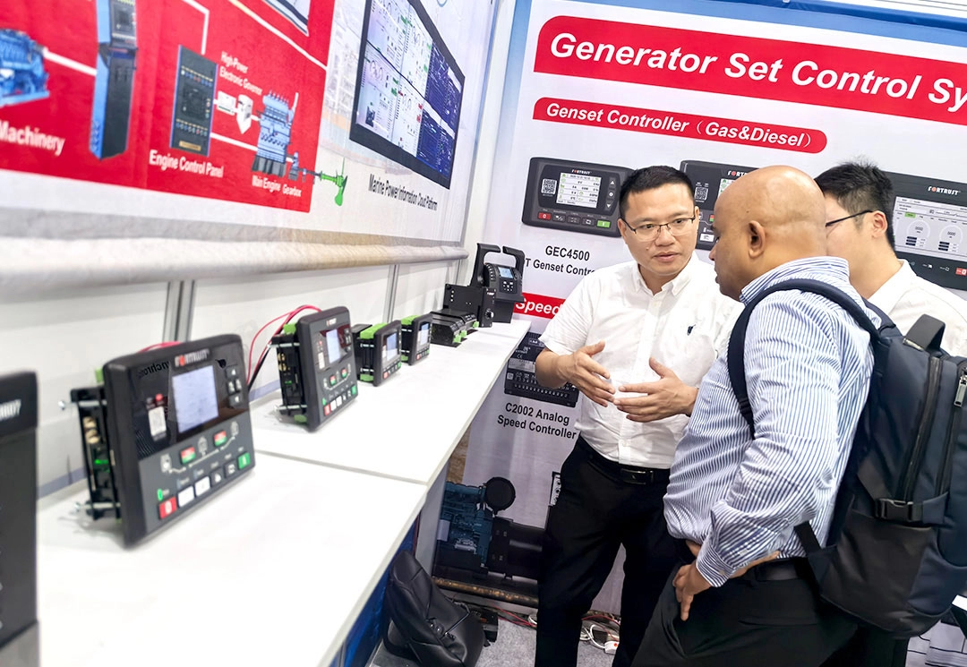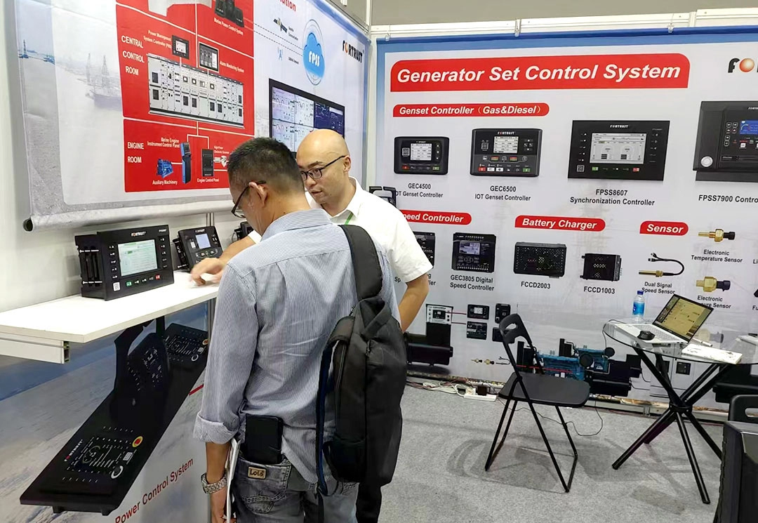 现场我们的明星产品FPSS系列智能终端、GEC系列机组控制器、MPIS船舶动力控制信息系统和储能微电网解决方案受到了广泛关注,其智能控制、物联网赋能和大屏彩色显示吸引了众多参观者驻足。