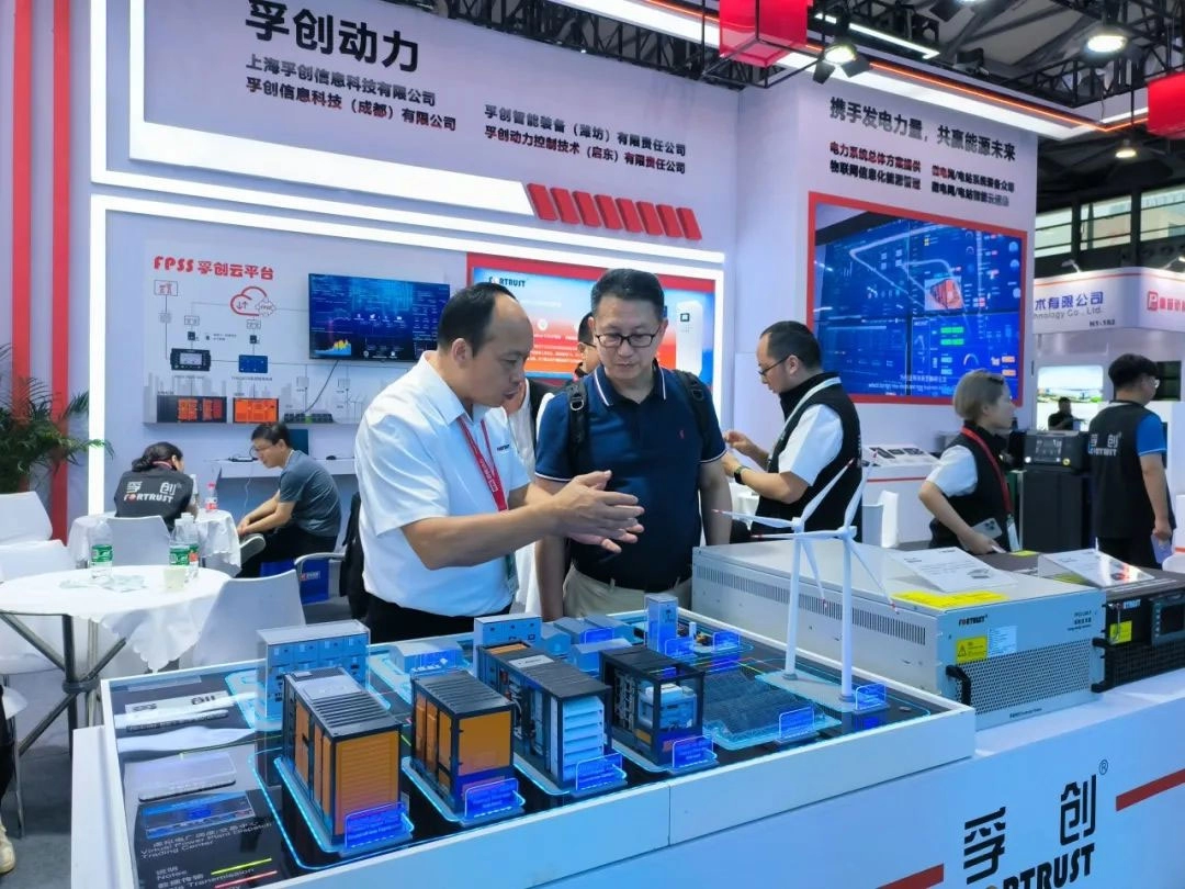 展会现场,孚创动力展台聚焦 “新能源智慧微电网解决方案” 核心,围绕智慧微电网系统方案提供、核心产品开发集成、能源信息化平台建设、运维服务 全链条,直观呈现风电、光伏、储能系统与市电协同的能源生态。